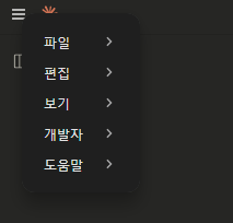 여기서 좌측 상단에 버튼을 누르시고 파일 -> 설정 -> 개발자로 들어갑니다.